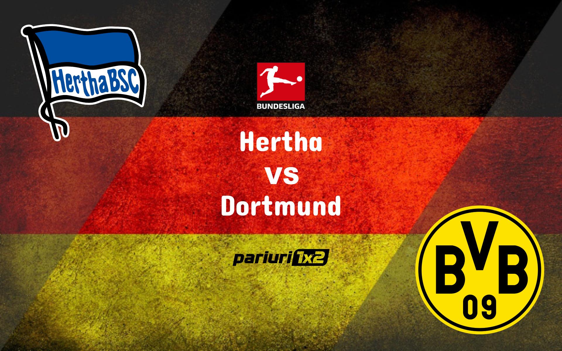 Ponturi fotbal » Sambata, incepand cu ora 19:30, se va disputa partida Hertha – Dortmund, din cadrul etapei a 17-a din Bundesliga. Dortmund s-a impus in ultimele 5 intalniri directe si nu a mai pierdut la Hertha din 2017. In sezonul trecut, Dortmund a invins cu 2-0 acasa si cu 5-2 in deplasare.