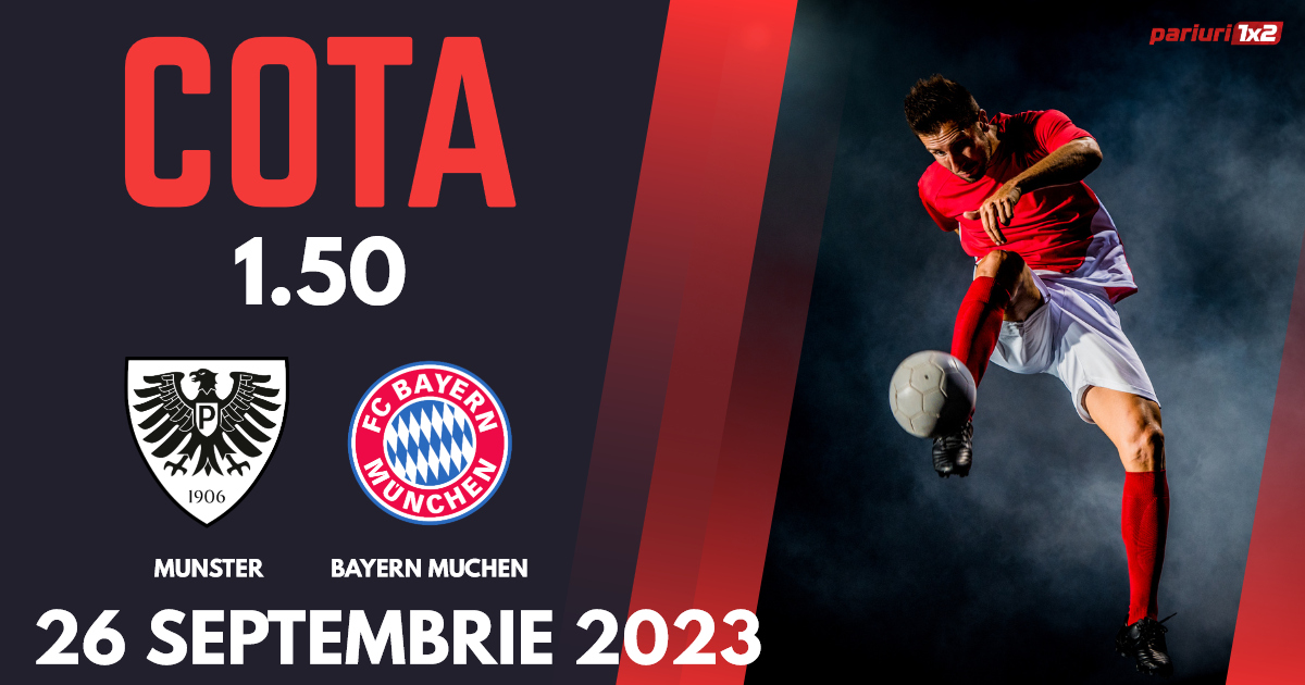 Pariuri: Preussen Munster – Bayern Munchen se va disputa marți, 26 septembrie, incepand cu ora 21:45, în cadrul 1/32 de finală ale Cupei Germaniei. Partida se joaca pe Preussenstadion din Munster.