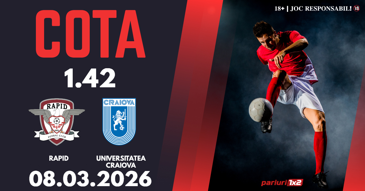 Rapid – Universitatea Craiova: Superliga a ajuns la etapa cu numărul 30, iar cele două formații se vor lupta pentru titlu. Cotele la ponturi pariuri ne indică faptul că vom avea parte de un meci în care oaspeții sunt favoriți, iar noi vă propunem un pronostic în cotă 1.42, bun pentru biletul zilei.