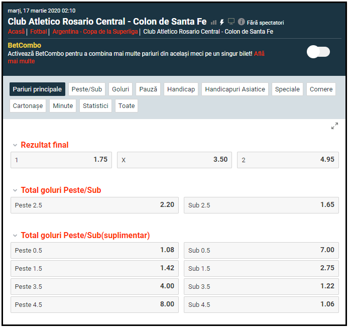 - In 14 din cele 15 confruntari de la Rosario, pariul „sub 2,5 goluri” a fost castigator: Sub 2,5 goluri – Cota 1.65 la Betano;