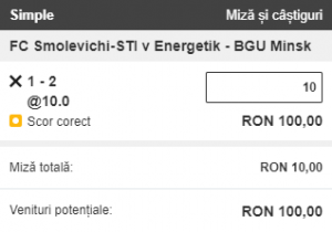 16.00 Smolevichi- Energetik, 1-2 scor corect , cota 10.00.