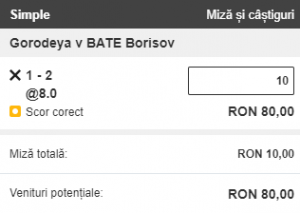 17.00 Gorodeya – BATE Borisov, 1-2 scor corect , cota 8.00.