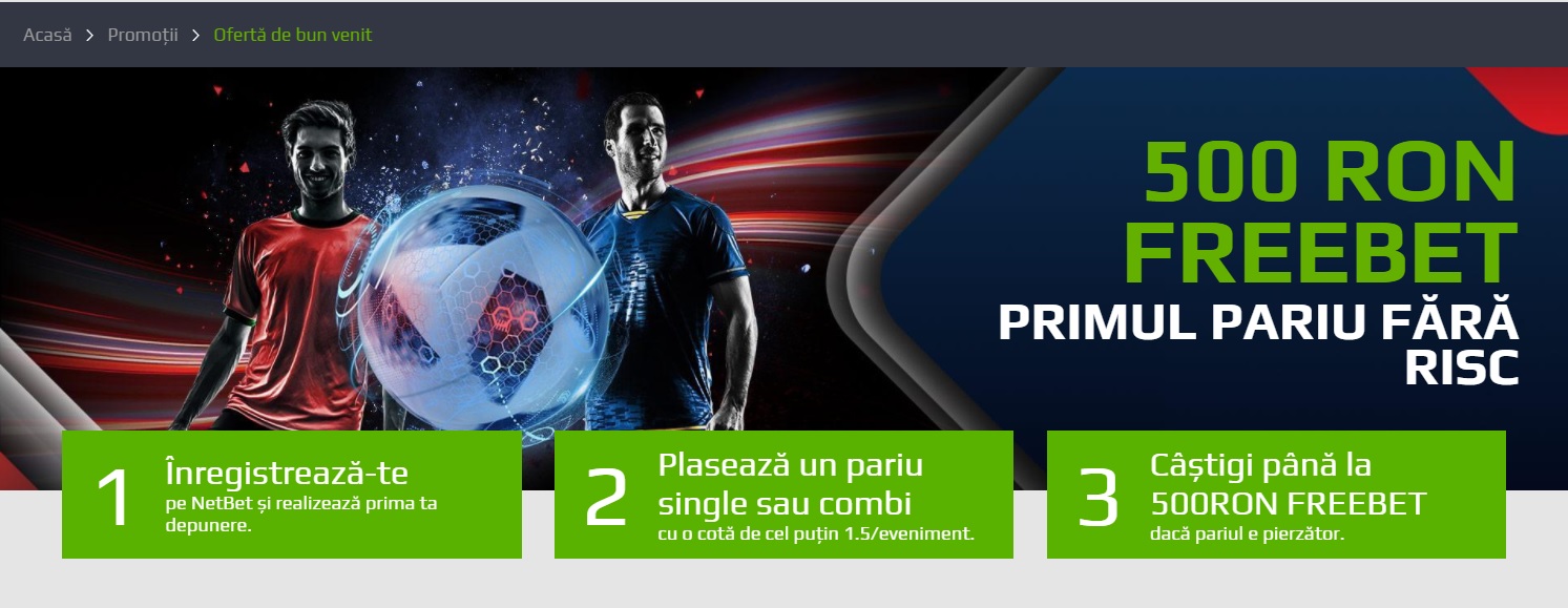 • Un simplu pas: Deschide-ti un cont la NetBet accesand acest link! Plaseaza primul tau pariu, la o cota mai mare sau egala cu 1.50.