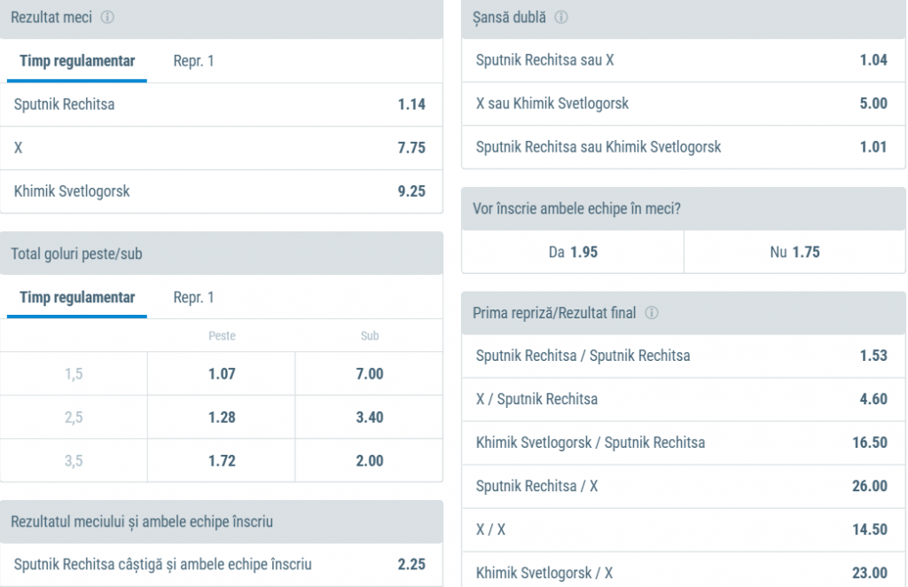 Sputnik Rechitsa este în opinia bookmakerilor mare favorită la câștigarea acestui meci având o cotă de doar 1.14 pentru a-și trece în cont cele treii puncte puse în joc.