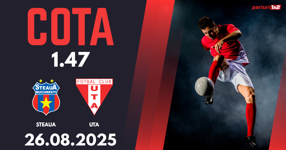 Steaua – UTA: Cupa României a ajuns în faza play offului, iar în continuare vom analiza un meci între două formații ai căror suporteri sunt înfrățiți. Arădenii lui Mihalcea sunt neînvinși în prima ligă. Cotele la ponturi pariuri ne arată faptul că va fi un echilibru în acest meci , iar noi vă propunem un pronostic în cotă 1.47, bun pentru biletul zilei.