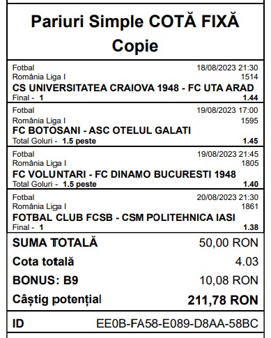 Am extras cele mai „safe” variante de profit de la partidele programate, rezultând un „combo” în cota totală de 4.03.