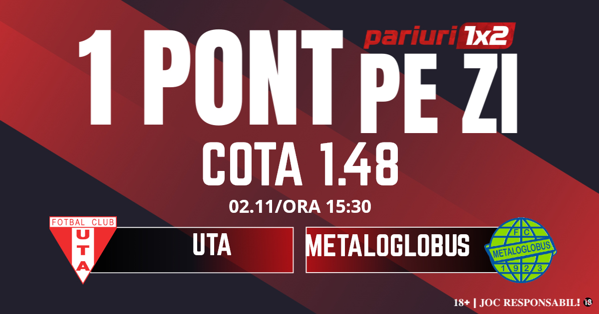 Pentru rubrica Un Pont pe Zi mergem la meciul dintre UTA și Metaloglobus, partidă contând pentru etapa cu numărul 15 din Superliga. Duelul dintre cele două formații va avea loc de la ora 15.30 pe Stadionul Francisc Neuman din Arad. Gazdele au început foarte bine campionatul și se parea că acestea se vor bate cu șanse serioase la play off. Pe parcurs, elevii lui Adi Mihalcea au pierdut din turație și nu au mai reușit o victorie în campionat de pe 9 august. Acest lucru a dus și la nemulțumirea fanilor care și-au exprimat dezamăgirea pentru evoluțiile modeste ale favoriților. De partea cealaltă, bucureștenii dau semne de viață după ce au obținut patru puncte din cele două dueluri de foc, victorie incredibilă cu FCSB (1-2) și remiză cu U Craiova (0-0), ambele pe teren propriu. Cele două formații s-au întâlnit ultima oară în 2019, atunci când au remizat, scor 1-1. Mizăm pe un meci în care gazdele ar cam trebui să se impună, iar pronosticul nostru este 1x și 1-4 goluri.
