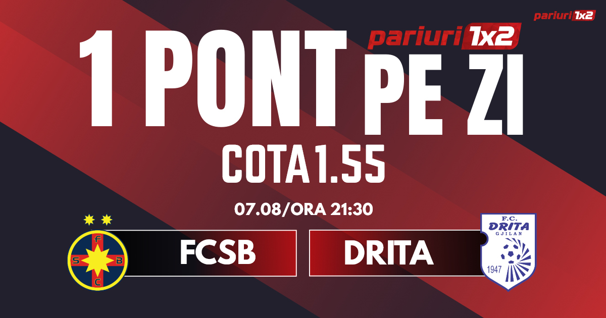 Pentru rubrica Un Pont pe Zi mergem la partida dintre FCSB și Drita, meci contând pentru calificările din Europa League. Duelul dintre cele două formații va avea loc pe Arena Națională, începând cu ora 21.30. Gazdele vin după o perioadă foarte dificilă, elevii lui Charambous având o formă sportivă foarte slabă. Bucureștenii au patru înfrângeri în ultimele patru meciuri, lucru de neconceput pentru o formație de talia celor de la FCSB. Drita vine după ce a ieșit din calificările pentru Liga Campionilor, fiind eliminată de FC Copenhaga, scor 0-3 la general. Mizăm pe o partidă în care gazdele vor lua un avantaj în perspectiva returului din Kosovo, iar pronosticul nostru este FCSB marchează peste 1.5 goluri.
