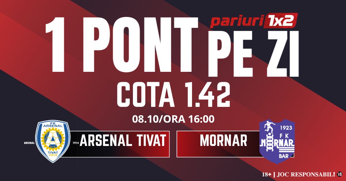 Pentru rubrica Un Pont pe Zi mergem la meciul dintre Arsenal Tivat și Mornar, meci contând pentru etapa cu numărul 11 din PRVA Crnogorska Liga, primul eșalon al fotbalului din Muntenegru. Duelul dintre cele două formații va avea loc pe Stadion u Parku din Tivat, începând cu ora 16.00. Gazdele se află pe locul șase în clasament cu 14 puncte acumulate în cele zece meciuri disputate. Gruparea din Tivat are o singură victorie în precedentele cinci întâlniri. De partea cealaltă, oaspeții se află pe locul 8 cu 13 puncte și nu au pierdut nici un meci din precedentele cinci disputate. De remarcat este faptul că Mornar joacă ofensiv, 13 goluri marcate și 15 primite. În ultima partidă directă, scorul a fost egal, 2-2. Ne așteptăm la un meci disputat iar pronsoticul nostru este peste 1.5 goluri.