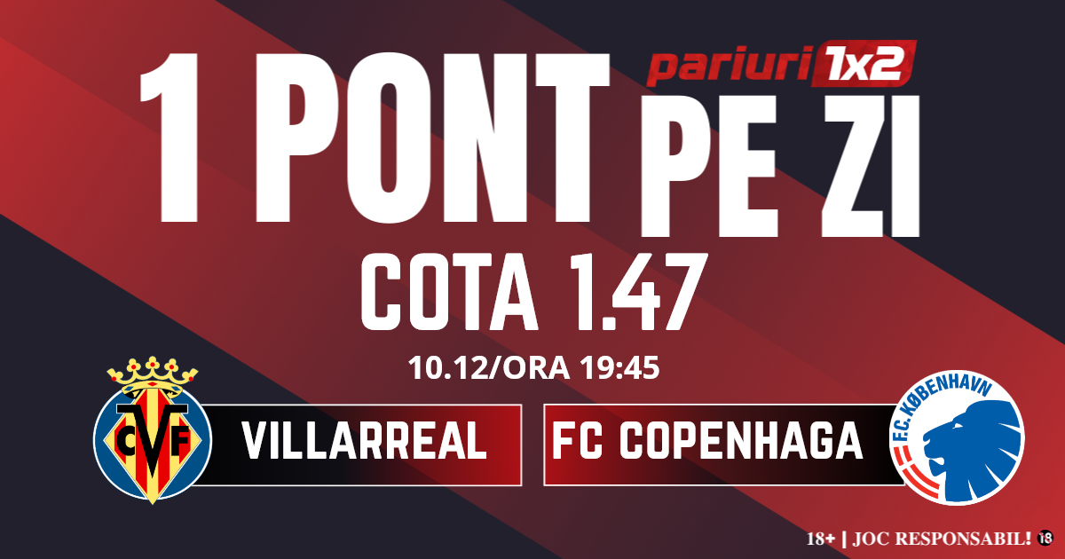 Pentru rubrica Un Pont pe Zi mergem la meciul dintre Villarreal și FC Copenhaga, partidă contând pentru etapa cu numărul șase din Liga Campionilor. Duelul dintre cele două formații va avea loc pe Estadio de la Ceramica din Villarreal, începând cu ora 19.45.  Gazdele fac un sezon foarte bun în La Liga, acolo unde sunt implicate, cel puțin pentru moment, în lupta pentru titlu. În schimb, submarinul galben a fost foarte modest în principala competiție europeană, fiind abia pe locul 34 cu un singur punct acumulat în cinci meciuri. Poate cea mai surprinzătoare înfrângere a fost cea cu Pafos, 0-1 în deplasarea din Cipru. Cu toate acestea, Villarreal are șanse matematice pentru a prinde un loc în top 24, dar pentru ca acest lucru să se întâmple, gruparea gazdă are nevoie de șase puncte în ultimele două runde din Liga Campionilor. De partea cealaltă, danezii vin după ce au obținut prima victorie etapa precedentă, 3-2 pe teren propriu cu Kairat Almaty. Cu toate acestea, spaniolii sunt favoriți în această confruntare, având un loc mai bun, iar motivația este la cote maxime. Mizăm pe un meci la discreția gazdelor, iar pronosticul nostru este 1x și sub 4.5 goluri.