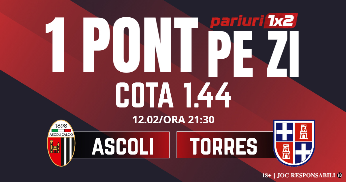 Pentru rubrica Un Pont pe Zi mergem la meciul dintre Ascoli și Torres, partidă contând pentru etapa cu numărul 26 din Serie C, al treilea eșalon al fotbalului din Italia. Duelul dintre cele două formații va avea loc pe Stadio Cino e Lillo Del Duca din Ascoli Piceno, începând cu ora 21.30. Gazdele sunt pe locul trei în această serie,iar promovarea este obiectivul principal. Ascoli are șanse mici să promoveze direct, dar cu 46 de puncte sunt la doar trei lungimi de poziția secundă, cea care asigură accederea directă în sferturile play offului pentru promovarea în Serie B. Gruparea gazdă are un singur eșec în cele 13 partide disputate pe Stadio Cino e Lillo Del Duca. Oaspeții sunt abia pe locul 18 cu doar 20 de puncte și vor avea mari probleme în ceea ce privește menținerea în Serie B. Mizăm pe un meci bun făcut de Ascoli, iar pronosticul nostru este 1x și sub 3.5 goluri.