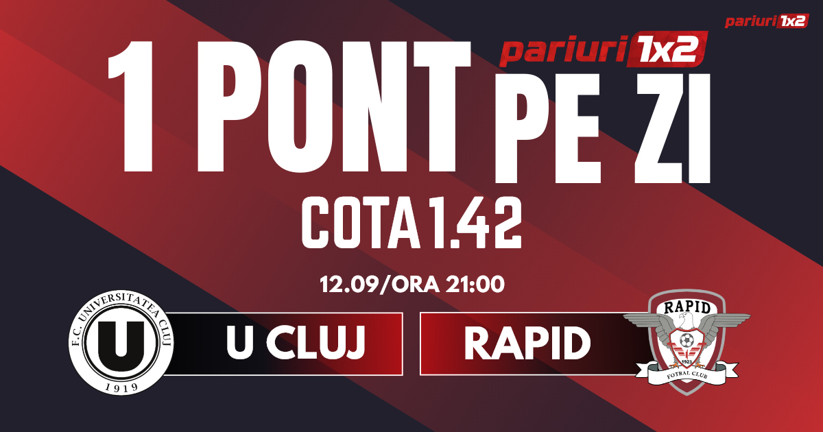 Pentru rubrica Un Pont pe Zi mergem la meciul U Cluj și Rapid, meci contând pentru etapa cu numărul nouă din Superliga. Duelul dintre cele două formații va avea loc pe Cluj Arena, începând cu ora 21.00. Derby-ul acestei etape aduce față în față două echipe care au ca obiectiv în primul rând play -offul. Oaspeții au ceva probleme de lot pe faza defensivă, Ciobotariu și Borza fiind absenți. Clujenii au început mai greu acest campionat, dar în această pauză competițională lotul echipei a fost întârit cu jucători foarte buni pentru nivelul Superligii. Mizăm pe un meci echilibrat în care „sepcile roșii” nu vor pierde, iar pronosticul nostru este 1x.