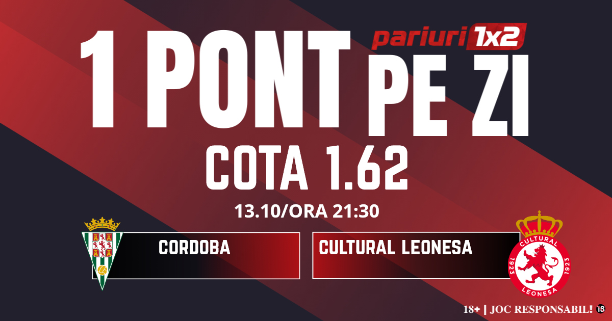Pentru rubrica Un Pont pe Zi mergem la meciul dintre Cordoba și Cultural Leonesa, partidă contând pentru etapa cu numărul 9 din La Liga 2, al doilea eșalon al fotbalului din Spania. Duelul dintre cele două formații va avea loc pe Estadio Nuevo Arcángel din Córdoba, începând cu ora 21.30. Gazdele au revenit în liga a 2-a dar parcursul nu este unul foarte bun. Fosta formație a lui Bogdan Andone ste abia pe locul 19 cu doar 9 puncte acumulate și se va lupta pentru menținerea în acest eșalon. De partea cealaltă, oaspeții stau și mai rău fiind pe poziția a 21-a cu doar 8 puncte. Leonesa este o echipă a contrastelor având victorii pe terenul celor de la Valladolid și Santander, formații cu pretenții, dar și înfrângeri cu Burgos sau Castellon. Mizăm pe un meci echilibrat, iar pronosticul nostru este Cordoba marchează 1-2 goluri.