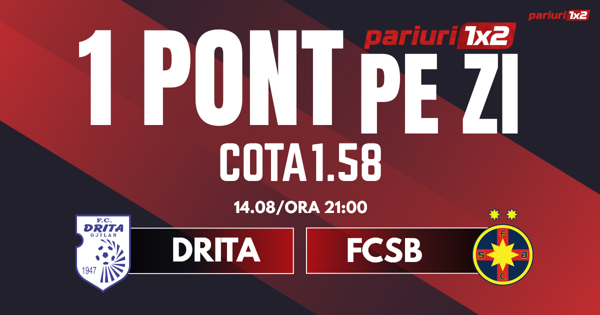 Pentru rubrica Un Pont pe Zi mergem la partida dintre Drita și FCSB, meci contând pentru returul calificărilor din Europa League. Duelul dintre cele două formații va avea loc pe Stadiumi Fadil Vokrri din Pristina, începând cu ora 21.00. În tur, bucureștenii au învins, scor 3-2. De altfel, elevii lui Charalambous nu sunt siguri de calificare, avantajul luat pe National Arena fiind unul minim. Gazdele nu arată deloc bine, în weekend pierzând, 0-1 cu Unirea Slobozia, în etapa cu numărul cinci din Superliga. Gazdele vor încerca să profite de avantajul terenului dar s-a văzut și în jocul de la București că au căzut fizic pe final. Mizăm pe faptul că FCSB va ataca pentru a avea liniște spre finalul meciului, mai ales că Drita nu este o forță. Astfel, pronosticul nostru este FCSB marchează 1-2 goluri