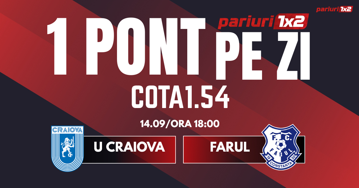 Pentru rubrica Un Pont pe Zi mergem la meciul dintre U Craiova și Farul, meci contând pentru etapa cu numărul nouă din Superliga. Duelul dintre cele două formații va avea loc pe Stadionul Ion Oblemenco din Craiova, începând cu ora 18.00. Oltenii sunt lideri în campionat, șase victorii și două remize în cele opt meciuri jucate. Gazdele au un lot foarte bun, iar dacă vor continua pe această linie, vor avea șanse mari să sărbătărească titlul la finalul sezonului. De partea cealaltă, Farul merge la Craiova pentru cel puțin un punct. Elevii lui Ianis Zicu au obținut în sfârșit o victorie în Superliga runda precedentă după trei înfrângeri consecutive. Mizăm pe un meci deschis, iar pronosticul nostru este 1x și 1-4 goluri.