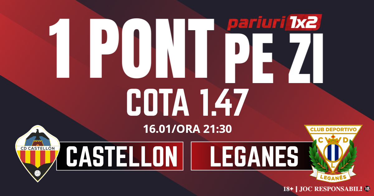 Pentru rubrica Un Pont pe Zi mergem la meciul dintre Castellon și Leganes, partidă contând pentru etapa cu numărul 22 din La Liga 2, al doilea eșalon al fotbalului din Spania. Duelul dintre cele două formații va avea loc pe Estadio Municipal de Castalia, începând cu ora 21.30. Gazdele se află pe locul 4 cu 35 de puncte, iar obiectivul este clar, promovarea în La Liga. Castellon are doar trei puncte de recuperat față de primul loc care asigură promovarea directă în prima ligă, ocupat de Las Palmas. Atacul este unul foarte bun, 34 de goluri marcate, dar defensiva este destul de modestă, 25 de goluri încasate. De partea cealaltă, după retrogradarea din La Liga, Leganesc nu se regăsește iar fanii sunt dezamăgiți de prestația favoriților.Oaspeții se află abia pe locul șase cu 26 de puncte și tremură serios și pentru menținerea în eșalonul secund. Mizăm pe un meci bun făcut de gazde, iar pronosticul nostru este 1x și 1-4 goluri.