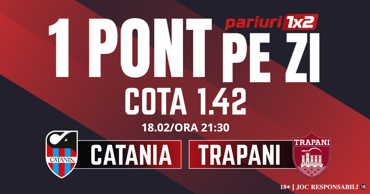 Pentru rubrica Un Pont pe Zi mergem la meciul dintre Catania și Trapani, partidă contând pentru etapa cu numărul 25 din Serie C, al treilea eșalon al fotbalului din Italia. Duelul dintre cele două formații va avea loc pe Stadio Angelo Massimino din Catania, începând cu ora 21.30. Aflată într-o perioadă neagră a existenței sale, echipa gazdă încearcă revenirea în fotbalul profesionist din Italia. Catania este pe locul doi cu 53 de puncte, la 8 lungimi de liderul Benevento. În eventualitatea unui succes, gazdele vor relansa lupta pentru promovarea directă. Ce este interesant, în cele 13 partide disputate pe propria arenă, formația din Sicilia nu are nici măcar un gol primit. De partea cealaltă, oaspeții sunt într-o situație disperată, locul 17 cu 25 de puncte. Mizăm pe o confruntare în care gazdele nu vor avea probleme, dar nici nu vor forța prea tare. Astfel, pronosticul nostru este sub 1.5 goluri în prima repriză.