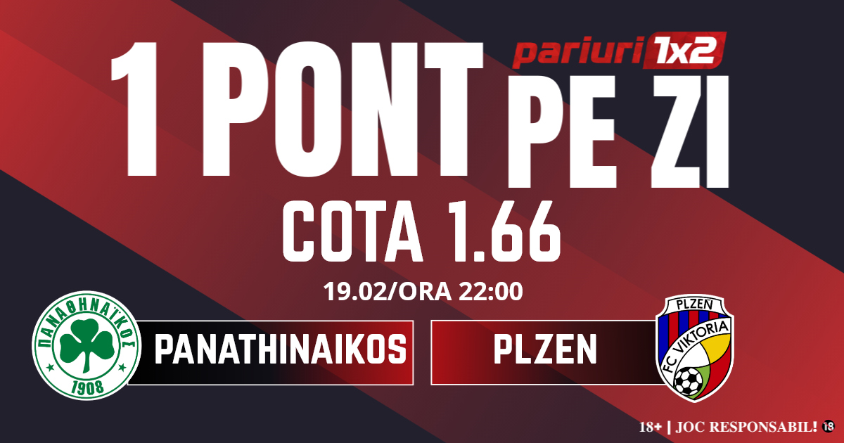 Pentru rubrica Un Pont pe Zi mergem la meciul dintre Panathinaikos și Plzen, partidă contând pentru 1/16-imile de finală ale Europa League. Duelul dintre cele două formații va avea loc pe Olympic Stadium din Atena, începând cu ora 22.00. Gazdele au ajuns în această fază a competiției după ce au terminat pe locul 20 în grupe cu 12 puncte acumulate. În ultimele cinci partide, gruparea gazdă nu a pierdut nici un meci și a obținut biletele pentru play off. Oaspeții au avut un parcurs ceva mai bun, 14 puncte acumulate și o clasare pe pozția a 14-a. Cehii nu au pierdut nici un meci în faza grupelor, trei victorii și cinci remize. Mai mult, cele două adversare s-au întâlnit în runda cu numărul șase din Europa League, remizând la Atena, scor 0-0. Mizăm din nou pe un meci echilibrat, mai ales că va veni și returul, acolo unde credem noi că se va juca calificarea. Astfel, pronosticul nostru este sub 2.5 goluri.