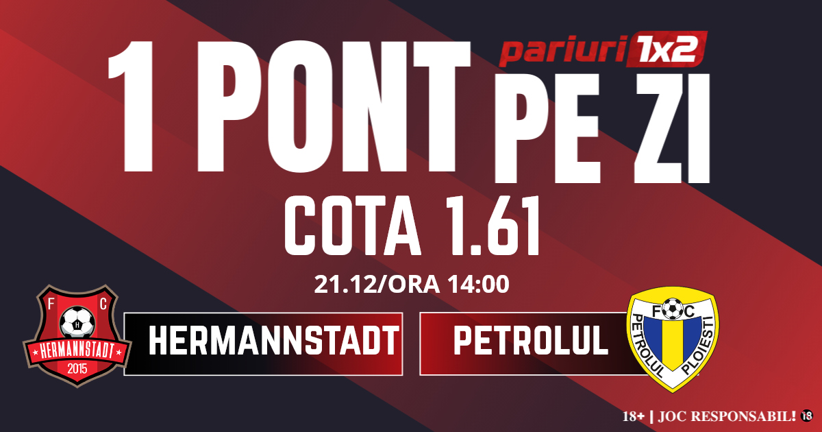 Pentru rubrica Un Pont pe Zi mergem la meciul dintre Hermannstadt și Petrolul, partidă contând pentru etapa cu numărul 21 din Superliga. Duelul dintre cele două formații va avea loc pe Stadionul Municipal din Sibiu, începând cu ora 14.00. Gazdele fac un sezon extrem de slab, iar tehnicianul Marius Măldărășanu a fost schimbat cu Dorinel Munteanu. Fostul antrenor al Oțelului a debutat însă cu un eșec, 0-2 pe teren propriu cu Universitatea Craiova. Sibienii au doar două victorii în 20 de meciuri iar dacă nu se va schimba ceva în jocul echipei au toate șansele să retrogradeze. De partea cealaltă, oaspeții vin de asemenea după o înfrângere, 0-1 pe teren propriu cu U Cluj, iar Petrolul se anunță clar o candidată la retrogradare. În schimb, trupa lui Eugen Neagoie primește foarte greu goluri, dar marchează de asemenea foarte greu. Mizăm pe un meci echilibrat, în care cele două formații nu vor risca, cel puțin pentru început. Astfel, pronosticul nostru este pauză sau final egal.