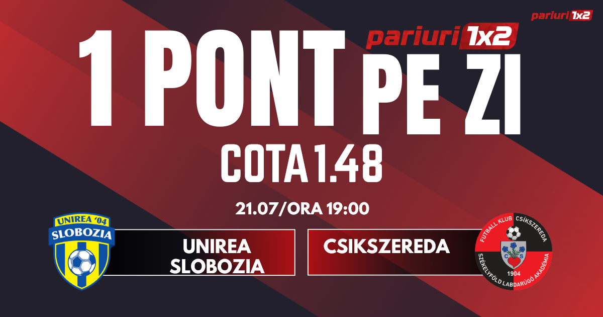 Pentru rubrica Un Pont pe Zi mergem la partida dintre Unirea Slobozia și Csikszereda, meci contând pentru etapa cu numărul doi din Superliga. Duelul dintre cele două formații va avea loc pe stadionul din Clinceni, începând cu ora 19.00. Gazdele au fost foarte aproape runda precedentă să plece cu un punct din deplasarea de la Cluj, cu CFR. Ialomițenii au schimbat mulți jucători după ce s-au salvat la baraj anul trecut dar credem că experiența acumulată sezonul trecut se va vedea în acest duel. De partea cealaltă. Csikszereda a debutat în Superliga cu un egal prețios, 2-2 cu Dinamo, iar elevii lui Ilyeș merg la Clinceni pentru a nu pierde. Mizăm pe un joc bun făcut de gazde, iar pronosticul nostru este 1x și peste 0.5 goluri.