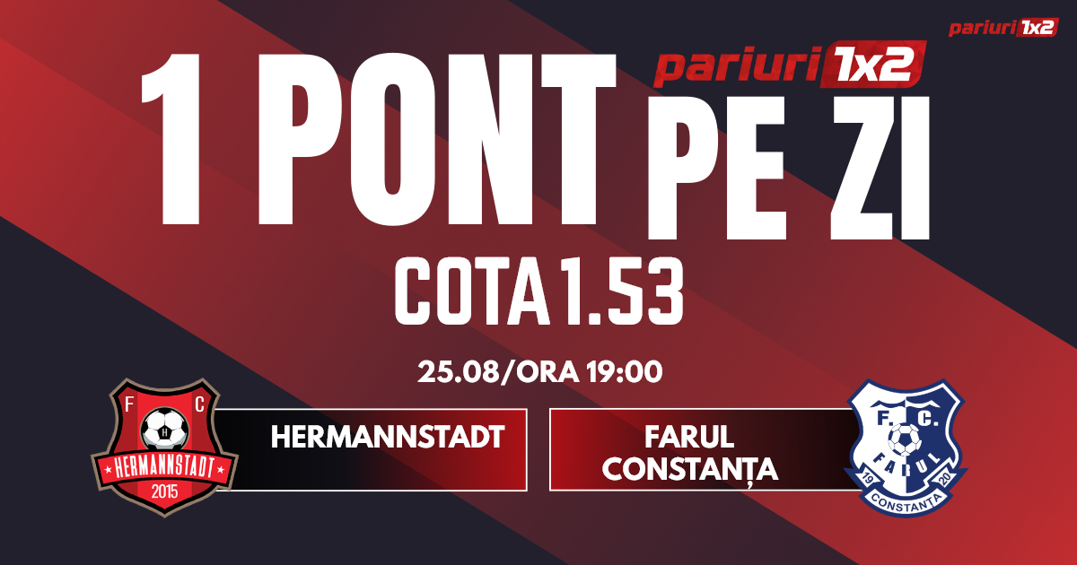 Pentru rubrica Un Pont pe Zi mergem la partida dintre Hermannstadt și Farul, meci contând pentru etapa cu numărul șapte din Superliga. Duelul dintre cele două formații va avea loc pe Stadionul Municipal din Sibiu, începând cu ora 19.00. Gazdele nu au nici o victorie în acest campionat, dar trupa lui Marius Măldărășanu a mai trecut prin aceste momente și anul trecut. Oaspeții vin după două înfrângeri în Superliga, runda precedentă fiind învinsă de U Cluj, scor 0-1, deși clujenii au jucat aproape tot meciul în zece oameni. În ultimele trei meciuri directe, sibienii nu au pierdut nici un meci. Pronosticul nostru este 1x și peste 0.5 goluri.