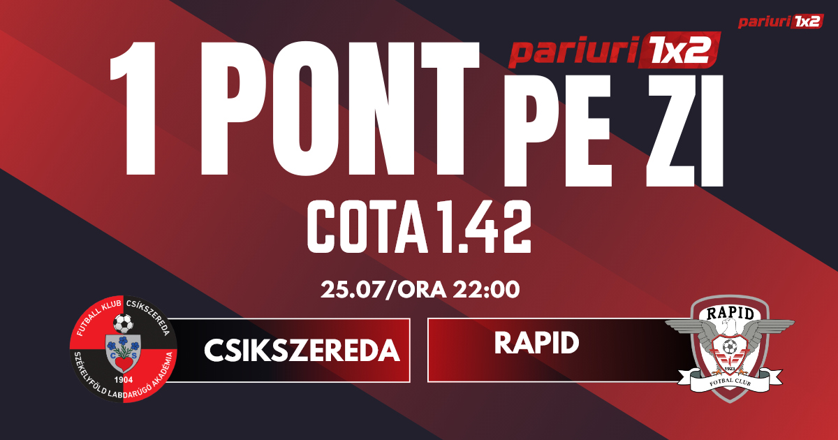 Pentru rubrica Un Pont pe Zi mergem la partida dintre Csikszereda și Rapid, meci contând pentru etapa cu numărul trei din Superliga. Duelul dintre cele două formații va avea loc pe Stadionul Municipal din Miercurea Ciuc, începând cu ora 22.00. Gazdele vin după o înfrângere usturătoare în runda precedentă, 1-6 cu Unirea Slobozia iar pentru elevii lui Ilyes impactul cu prima divizie s-a dovedit a fi dur. De partea cealaltă, giuleștenii vor titlul anul acesta iar cuvântul de ordine este victorie în această etapă. Elevii lui Gâlcă au remizat etapa precedentă, 1-1 cu CFR Cluj. Mizăm pe un meci deschis, iar pronosticul nostru este x2 și peste 1.5 goluri.