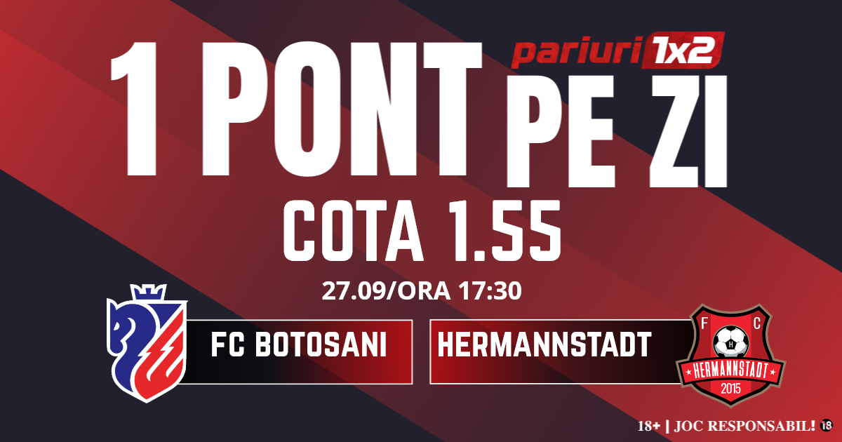 Pentru rubrica Un Pont pe Zi mergem la meciul dintre FC Botoșani și Hermannstadt, partidă contând pentru etapa cu numărul 14 din Superliga. Duelul dintre cele două formații va avea loc pe Stadionul Municipal, începând cu ora 17.30. Gazdele se află pe primul loc al clasamentului cu 28 de puncte acumulate, fiind o adevărată surpriză pentru toată lumea fotbalului românesc. Elevii lui Leo Grozavu merg perfect pe teren propriu acolo unde au cinci victorii și două remize în șapte meciuri și 17 goluri marcate. De partea cealaltă, sibienii sunt penultimii în clasament cu doar zece puncte acumulate iar perspectivele sunt sumbre. Elevii lui Măldărășanu vin după o înfrângere clară pe teren propriu, 0-2 cu Csikszereda, iar echipa sibiană va avea viață grea în lupta pentru evitarea retrogradării. Mizăm pe un meci spectaculos, în care oaspeții nu se prea pot mulțumi cu un punct, iar pronosticul nostru este 2-4 goluri.