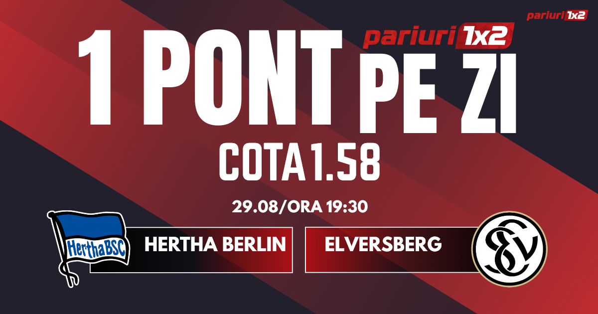 Pentru rubrica Un Pont pe Zi mergem la partida dintre Hertha Berlin și Elversberg, meci contând pentru etapa cu numărul patru din Zweite Bundesliga. Duelul dintre cele două formații va avea loc pe Olympiastadion din Berlin, începând cu ora 19.30 . Gazdele, deși erau considerate favorite la promovarea în Bundesliga la începutul acestui sezon, au început foarte slab. În cele trei runde disputate, berlinezii au acumulat doar două puncte și au marcat un gol. De partea cealaltă, gruparea din Saarland vine după o victorie, 1-0 pe teren propriu cu FC Kaiserslautern. Mizăm pe un meci echilibrat, în care totuși gazdele nu vor pierde. Astfel, pronosticul nostru este 1x și sub 4.5 goluri.