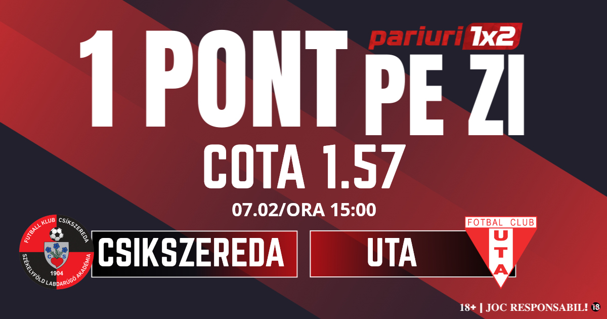 Pentru rubrica Un Pont pe Zi mergem la meciul dintre Csikszereda și UTA, partidă contânnd pentru etapa cu numărul 26 din Superliga. Duelul dintre cele două formații va avea loc pe Stadionul din Miercurea Ciuc, începând cu ora 15.00. Gazdele se vor lupta din greu pentru evitarea retrogradării, dar în 2026 au obținut șase puncte din cele 12 posibile. Ciucanii au învins pe FC Botoșani și Metaloglobus cu același scor, 1-0. Elevii lui Robert Ilyeș vor beneficia și de avantajul terenului propriu în acest duel, iar temperaturile scăzute ar putea constitui un atu. Oaspeții vin după o înfrângere, 0-1 cu CFR Cluj pe teren propriu și nu au voie să piardă această partidă. În cazul în care nu vor câștiga, arădenii rămân cu șanse mici la accederea în play off. Elevilor lui Adrian Mihalcea nu le va fi ușor în această partidă, chiar dacă sunt favoriți. Mizăm pe o partidă oarecum echilibrată, iar pronosticul nostru este x2 și 1-4 goluri.
