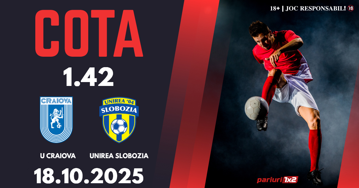 Ponturi U Craiova – Unirea Slobozia : Cota 1.42 la casa de pariuri Betano pentru selecția ” 1x și 1-4 goluri”
