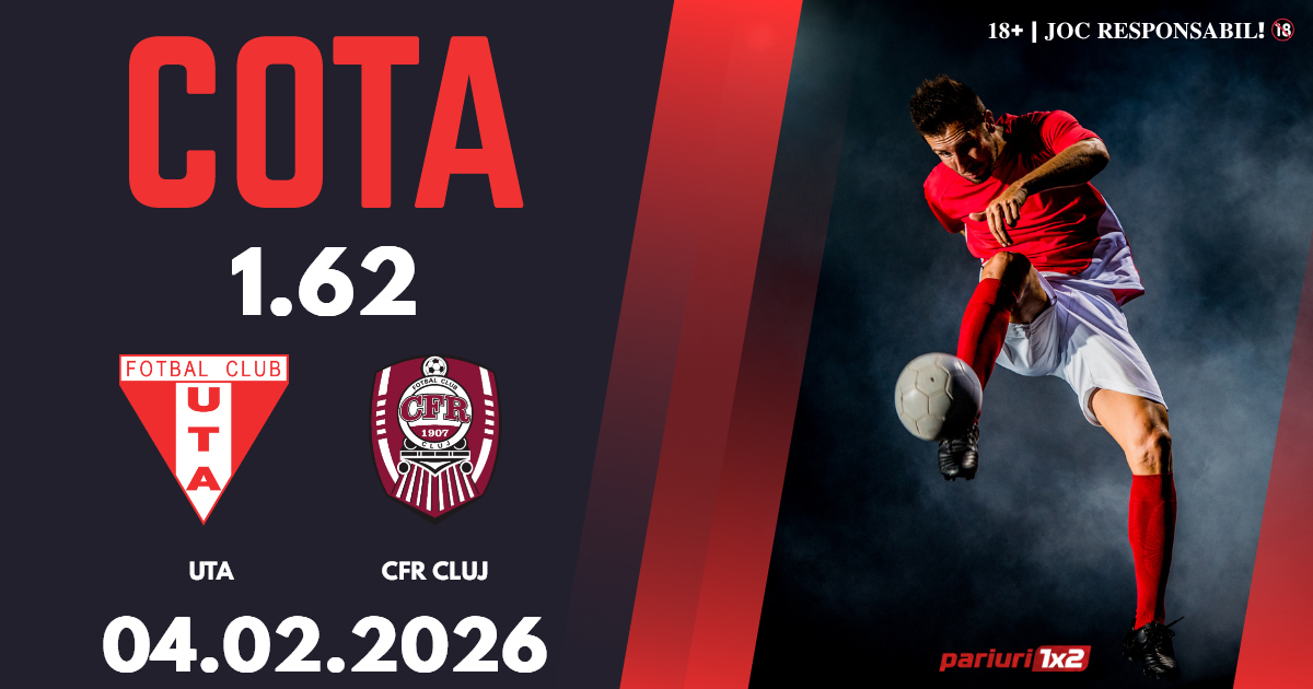 UTA – CFR Cluj: Superliga a ajuns la etapa cu numărul 25, iar lupta pentru play off este foarte strânsă. Cotele la ponturi pariuri ne indică faptul că vom avea parte de un meci echilibrat, iar noi vă propunem un pronostic în cotă 1.62, bun pentru biletul zilei.