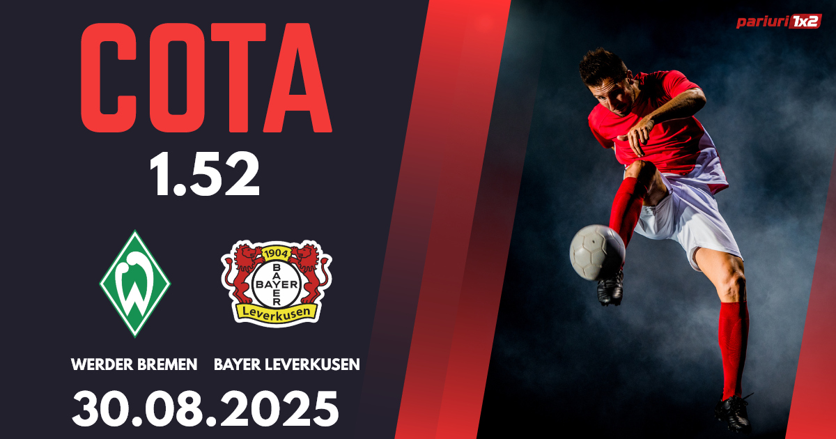 Werder Bremen – Bayer Leverkusen: Bundesliga continuă cu runda a 2-a.Cele două echipe vin după înfrângeri în runda inaugurală a primului eșalon al fotbalului german. Cotele la ponturi pariuri ne arată faptul că fosta campioană a Germaniei este favorită în acest meci , iar noi vă propunem un pronostic în cotă 1.52, bun pentru biletul zilei.