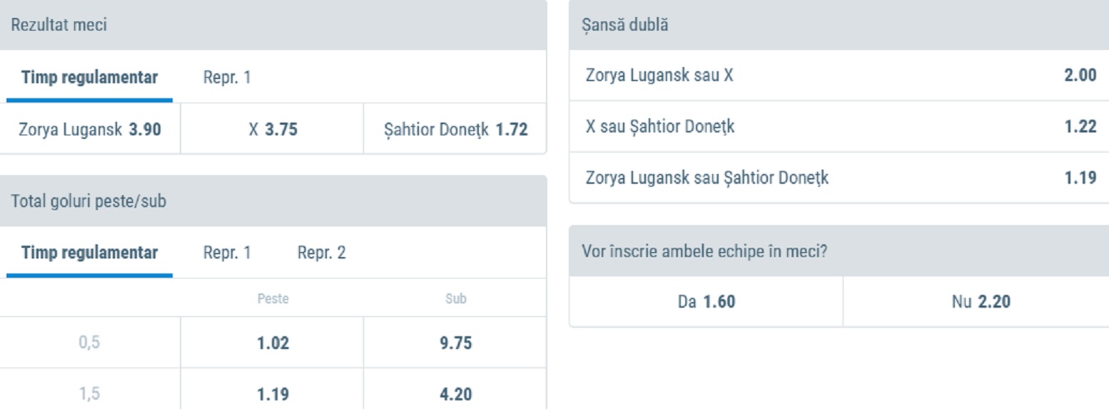 De cealalta parte, Sahtior este lider fara drept de apel. Cu 14 puncte avans fata de marea rivala, Dinamo Kiev, trupa din Donetsk este aproape de castigarea unui nou titlu. Totusi, atat timp cat Europa League s-a intrerupt oficial, nu este nici un motiv pentru fosta trupa a lui Mircea Lucescu sa opreasca „turatia” in campionat. Chiar si in acest context, in vederea obtinerii celor mai bune pronosticuri, alegem cont sa mizam acoperit si sa ne indreptam atentia catre numarul total al golurilor.