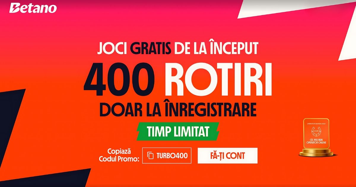 Joacă Gratis de la început! De Paște, Betano, câștigătoare a Premiului pentru Cel Mai Bun Operator de Pariuri Online în 2024 vine cu o ofertă de neratat »» 400 Rotiri Gratuite fără verificare, fără depunere și cu rulaj x1.
