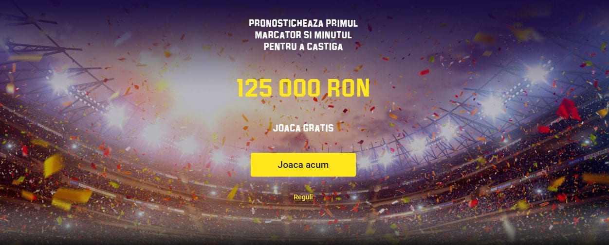 - Castigatorul va fi utilizatorul care intuieste deopotriva atat primul marcator, cat si minutul exact al primului gol.