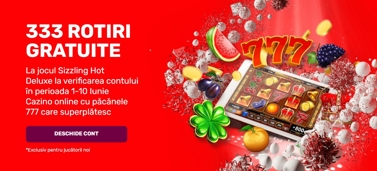 In perioada 1-10 iunie 2021, agentia iti ofera 333 de rotiri gratuite la slotul video Sizzling Hot, fara vreo depunere necesara!