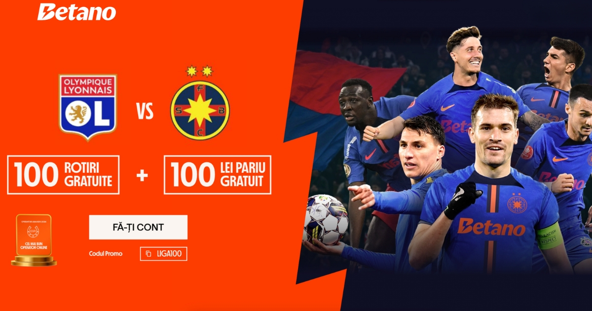 Cu ocazia acestui super meci european, Lyon – FCSB, Betano îți oferă 100 Rotiri Gratuite + 100 LEI Pariu Gratuit FĂRĂ DEPUNERE. Vrei sa faci si o depunere? Primești extra bonus 100% până la 500 RON