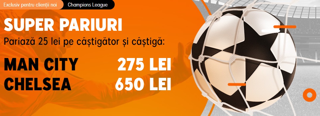 - Pariaza pe cotele marite: 11.00 pentru Man. City, 26.00 pentru Chelsea. Miza maxima acceptata este 25 RON.
