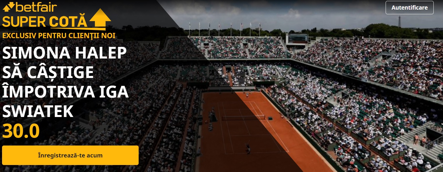 Pariaza pe acesta disputa la Betfair, agentie care propune o cota marita de 30.0 pentru victoria Simonei Halep! Maxim 5 RON se califică pentru această promoţie.