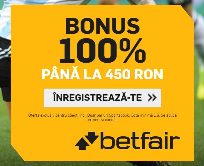 Daca esti nou la Betfair, atunci nu mai astepta si deschide un cont folosind acest link. Doar prin Pariuri1x2.ro vei primi un bonus de 550 RON , bonusuri speciale si vei putea participa la promotiile exclusive pe care le desfasuram doar pentru cei care isi deschid cont prin site-ul nostru.