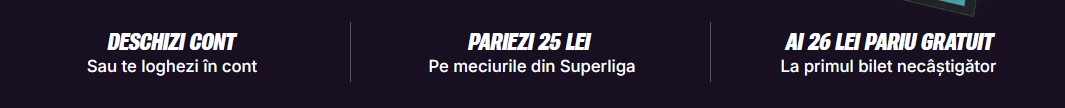 ✅ Plasează un bilet pre-meci sau live cu miză minimă 25 Lei, bani reali pe oricare dintre meciurile din etapa curentă a SuperLigii (România),
