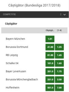 Leipzig si Schalke au mai degraba tentative fanteziste in lupte petru titlu. Cu toate ca ocupa locul secund in Bundesliga, “minerii” primesc o cota de 101 sa termine primii, in timp ce trupa lui Ralph Hasenhuttl are cota 81 pentru. In acest moment “taurii” ocupa doar pozitia a cincea.