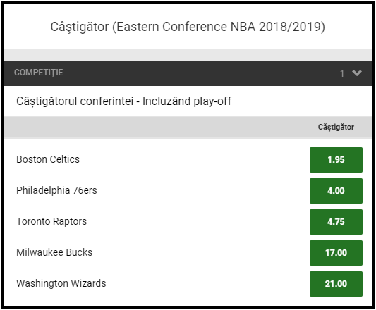 1.95 este cota oferita de Unibet pentru ca Boston Celtics sa castige Conferinta de Est