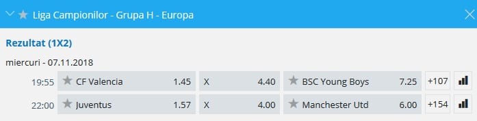Cotele partidelor din grupa H a Ligii Campionilor