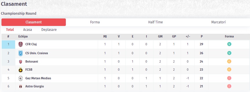 Clasamentul Ligii 1 inaintea etapei a 2-a in play-off (conform Live Score Pariuri1x2)