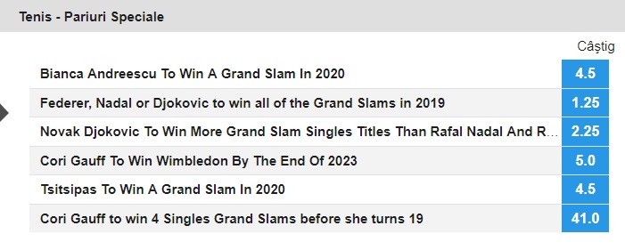 Chiar inaintea debutului turneului de Mare Slem de la US Open, casa de pariuri Betfair ne da sansa sa mizam pe pariuri speciale referitoare la starurile tenisului, inclusiv canadianca de origine romana, Bianca Andreescu.
