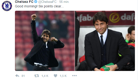 Trupa pregatita de Conte a profitat la maxim de derapajul lui Arsenal, in fief-ul echipei Everton (1-2). Dupa succesul cu 1-0 contabilizat pe terenul lui Sunderland, Chelsea s-a distantat la 6 puncte in fruntea ierarhiei din Anglia. Pentru Costa si compania, victoria a fost a 13-a in 16 runde si a 10-a consecutiva!