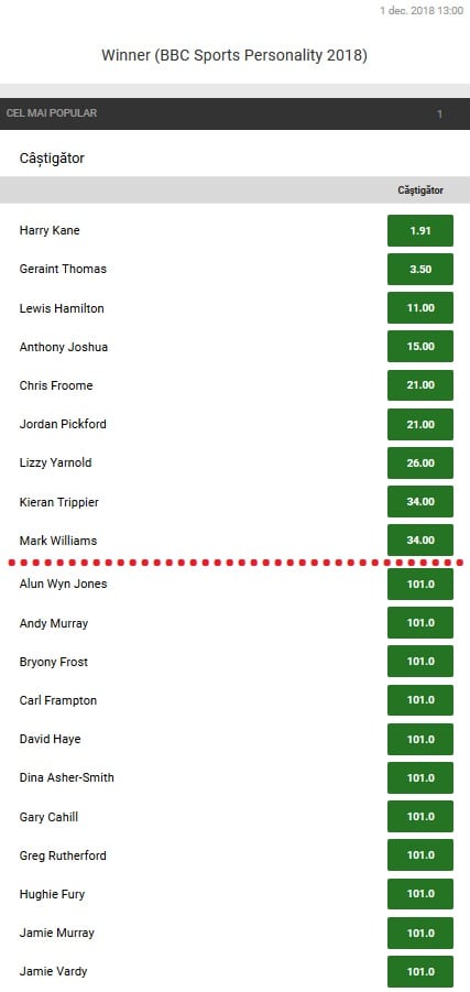 Pana va reveni cu „acte in regula” in tenis, Andy Murray este considerat una dintre favoritii  obtinerii distinctiei de „personalitatae anului” in Marea Britanie. In ciuda accidentarilor suferite si implicit a pauzei din competitie, acesta a tinut mai mereu prima pagina a tabloidelor din UK. Astfel, puteti paria pe o COTA BOMBA de 101.00, daca Murray va primi distinctia in cauza. Totusi, va sfatuim sa o pariati, daca doriti, din bonusul celor de la Unibet in valoare de 250 RON pentru a o miza complet gratuit, fara nici un risc!