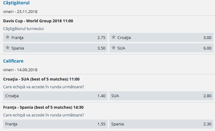 Cotele semifinalelor Cupei Davis – 2018