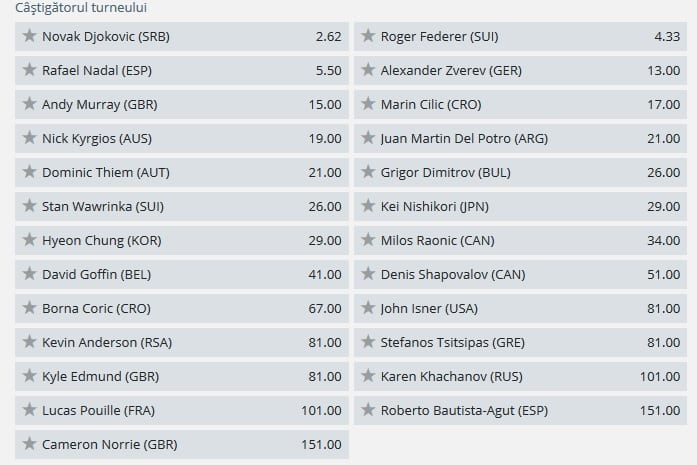 Cotele la castigarea Australian Open 2019